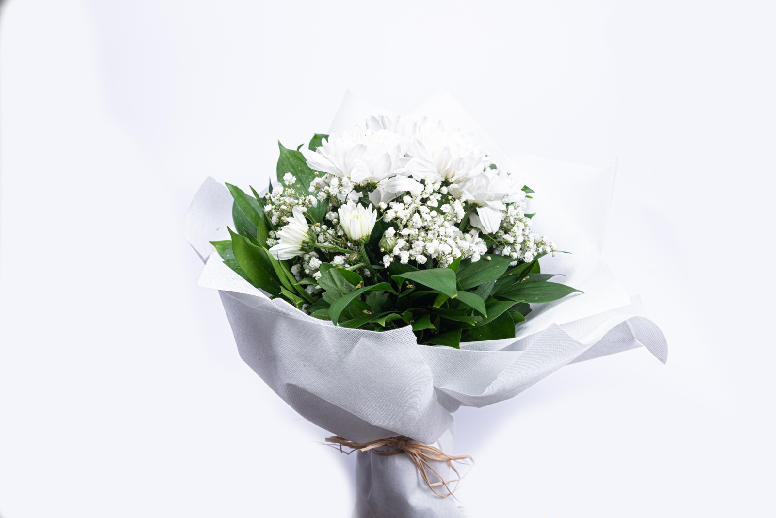 Okrugao buket sa granom bele margarete